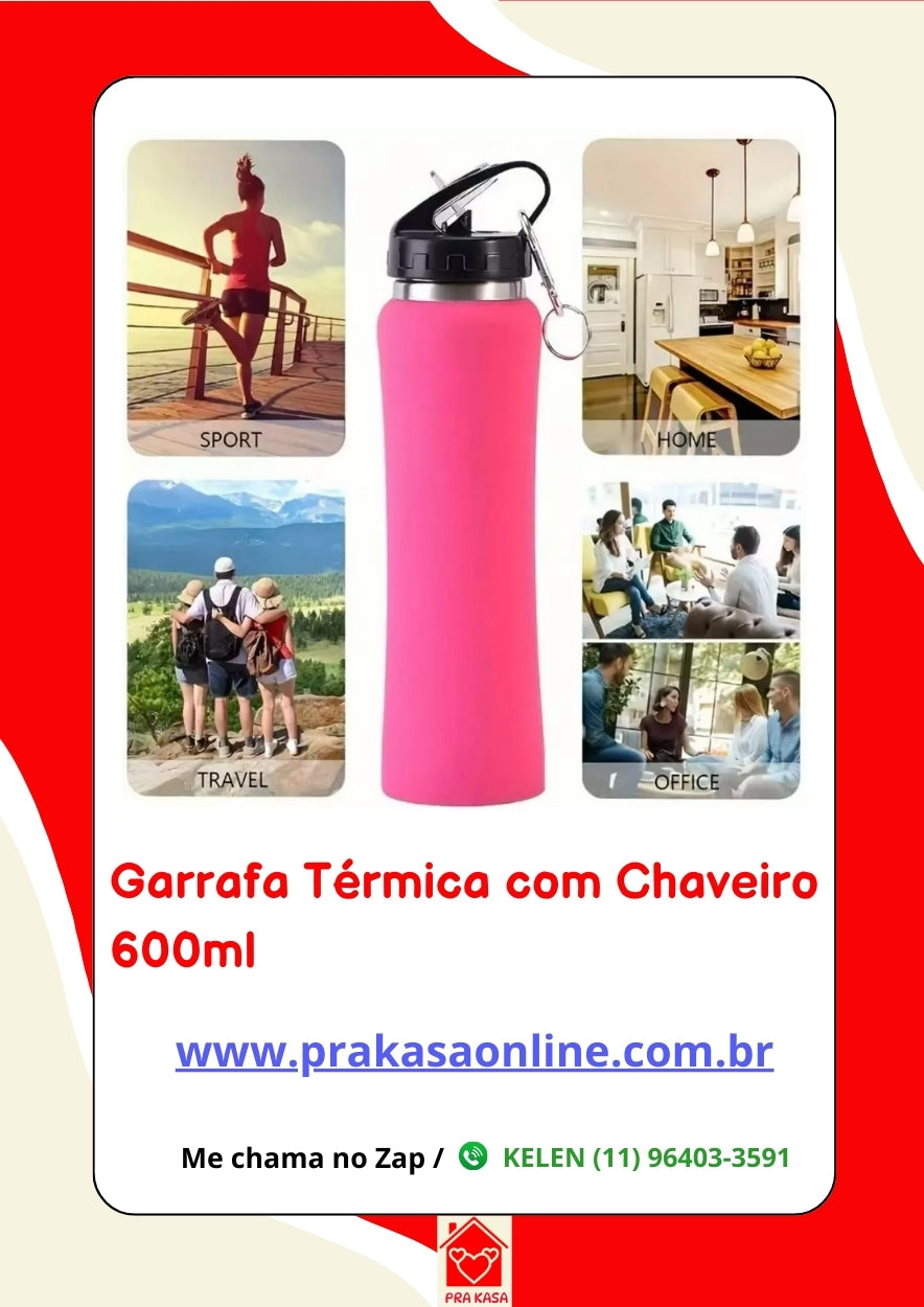 Garanta já a sua Garrafa Térmica com Chaveiro 600 ml e tenha mais conforto, praticidade e estilo em qualquer momento do seu dia! 🧭🥤