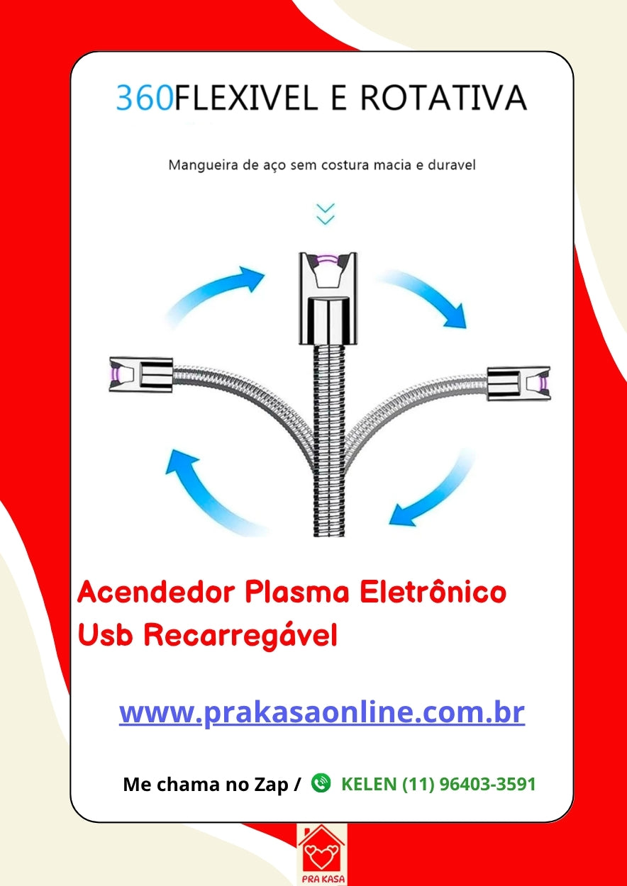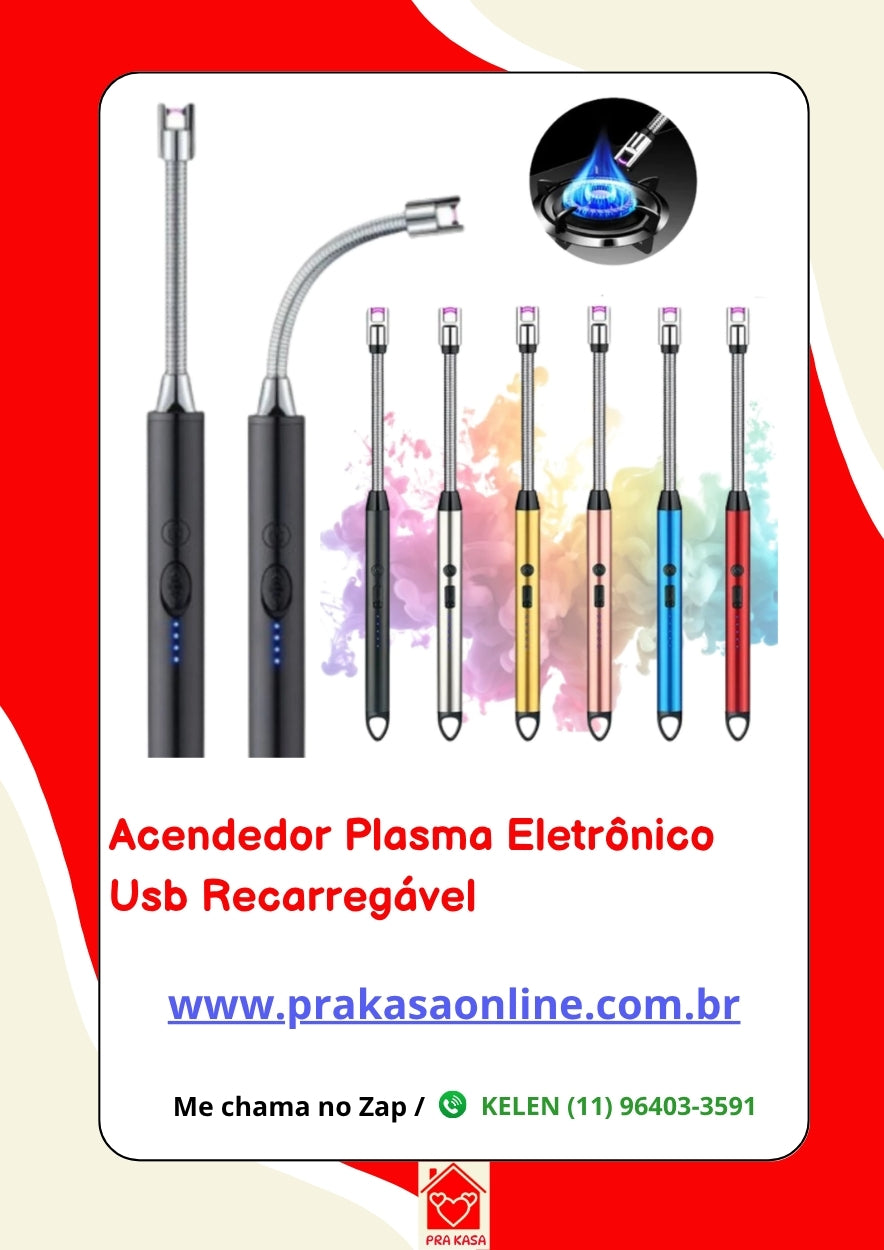 O acendedor de plasma além de ser lindo e muito prático é recarregado pela conexão USB do computador, pelo carregador de celular, pela tomada, qualquer aparelho que tenha USB. Perfeito para ser usado em qualquer ambiente sem se preocupar com chuva ou vento. Nenhum gás ou combustível é necessário.