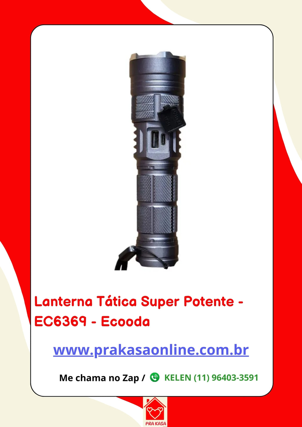 A Lanterna Tática Super Potente da marca Ecooda é a escolha ideal para quem busca eficiência e durabilidade em suas aventuras ao ar livre.