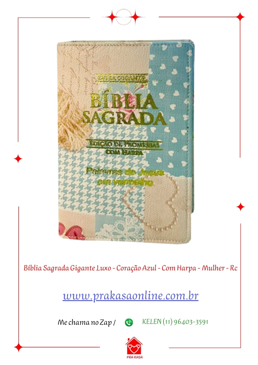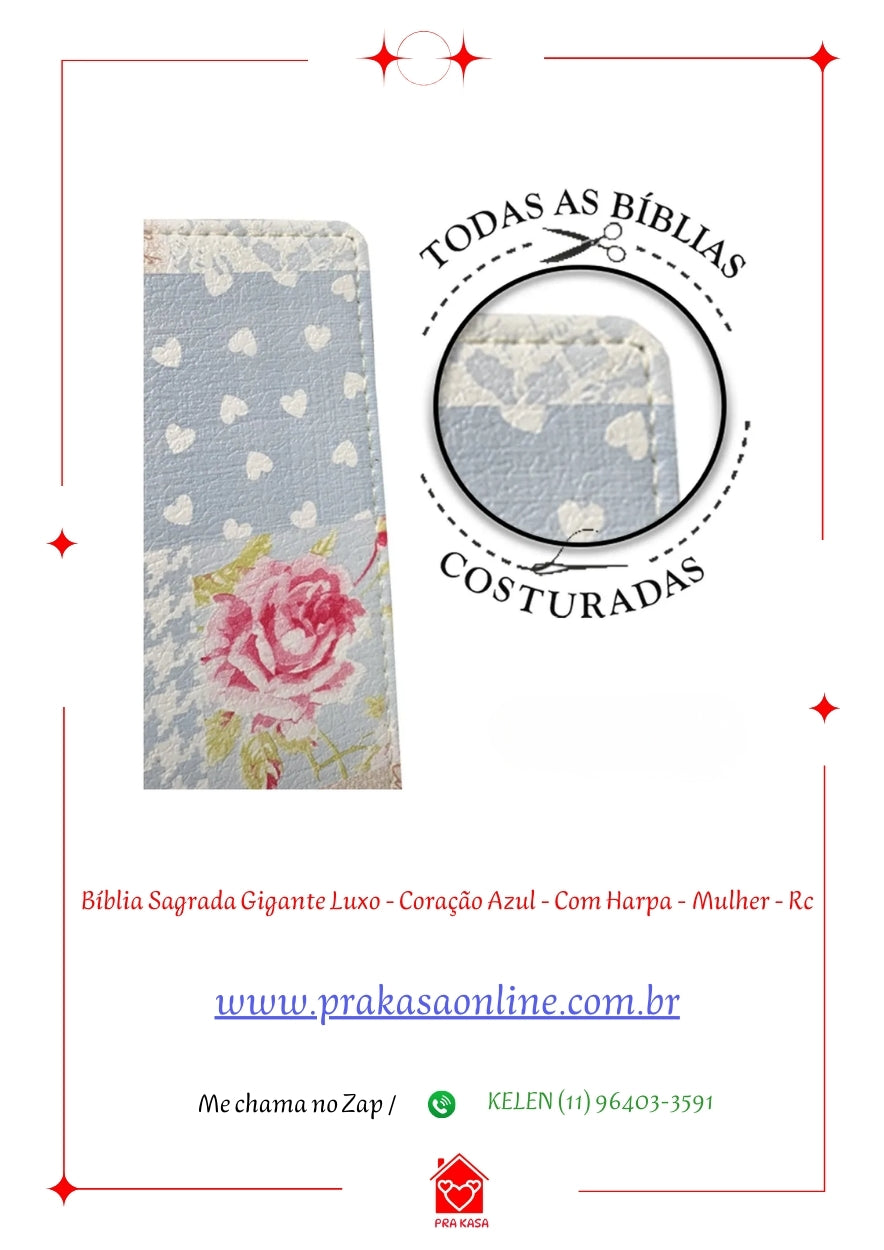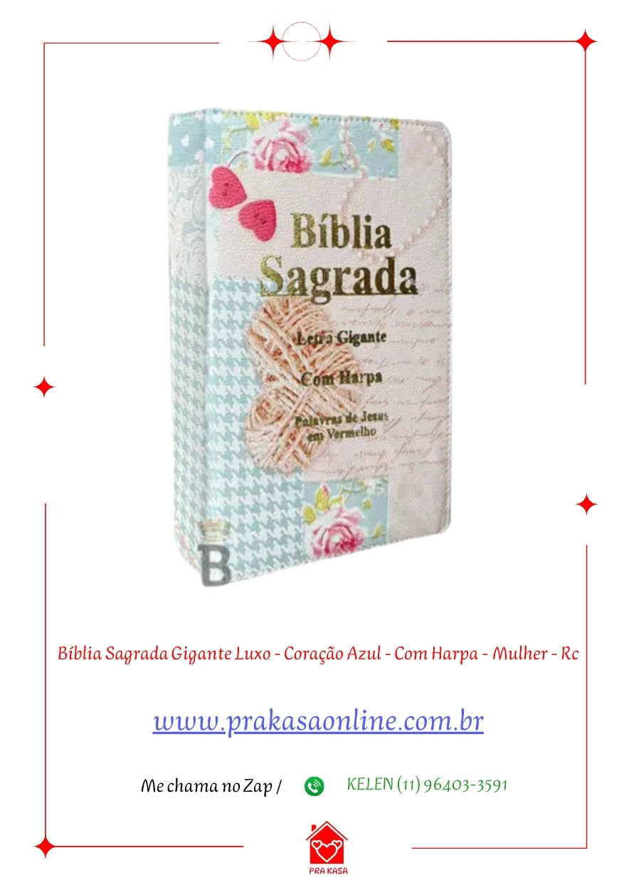 Bíblia Sagrada Gigante Luxo - Coração Azul - Com Harpa - Mulher - RC