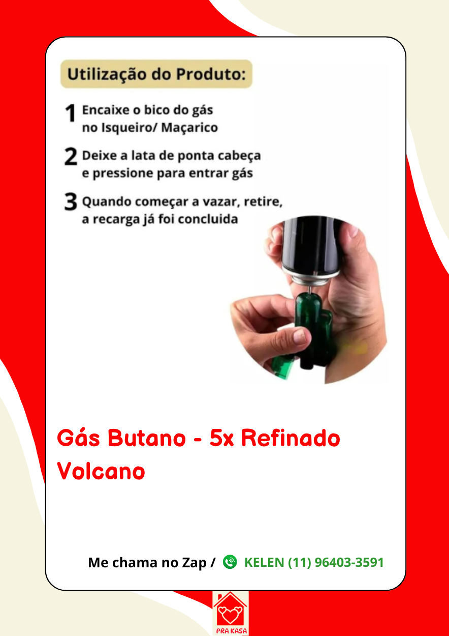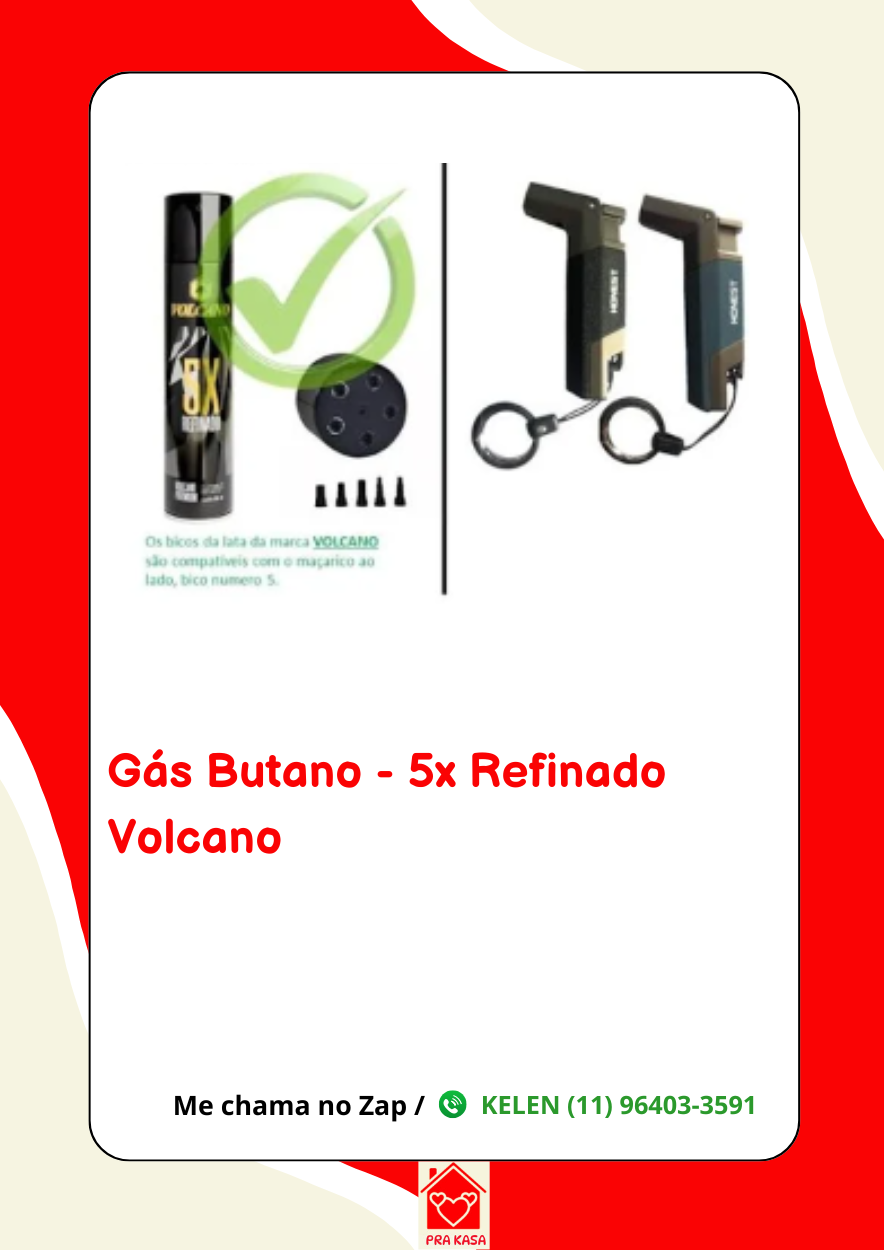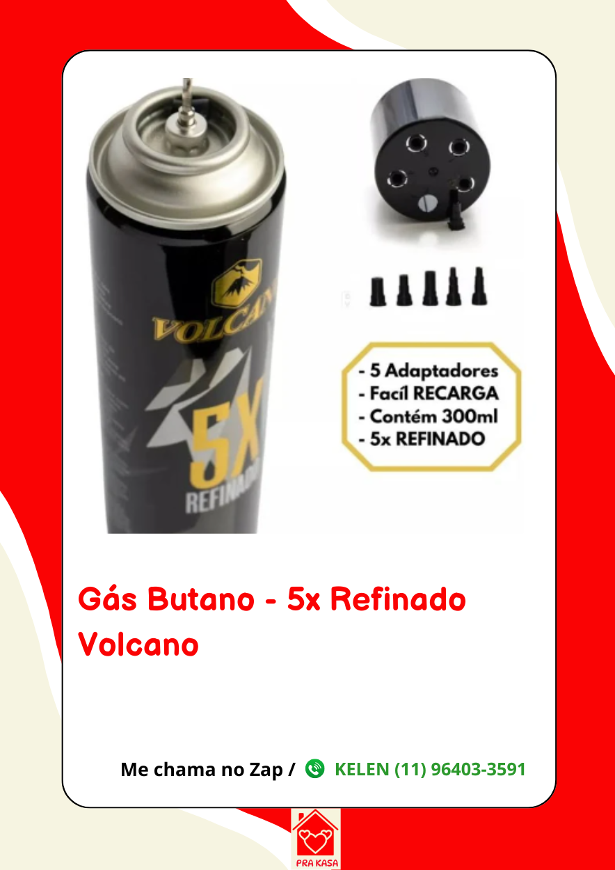 Gás Volcano 5x 300ml para utilização em isqueiros recarregáveis e maçaricos pequenos.